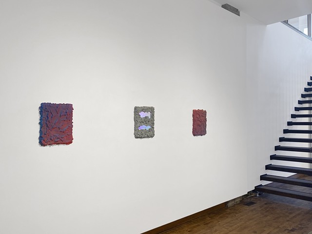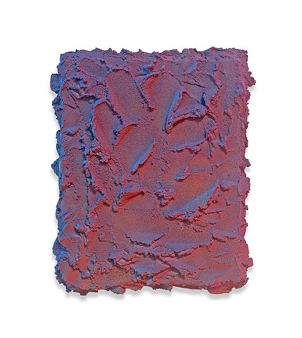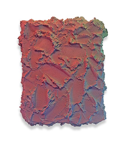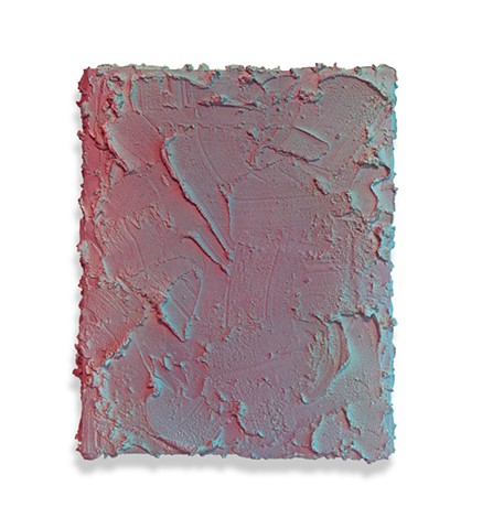 Tyler Matheson’s latest series ‘Oblivion’, builds upon the artist’s sustained invagination of identity and performativity. Presented alongside a selection of the artist’s ‘Parallax’ series, of vivid and colourful concrete paintings, Matheson sheds light on the complex relationship between selfhood and perception. Matheson creates highly textured rich paintings using unconventional industrial material, like tiling grout. The artist utilizes thick and gestural applications of grout, forming a rigid and uneven texture on the surface of the canvas.